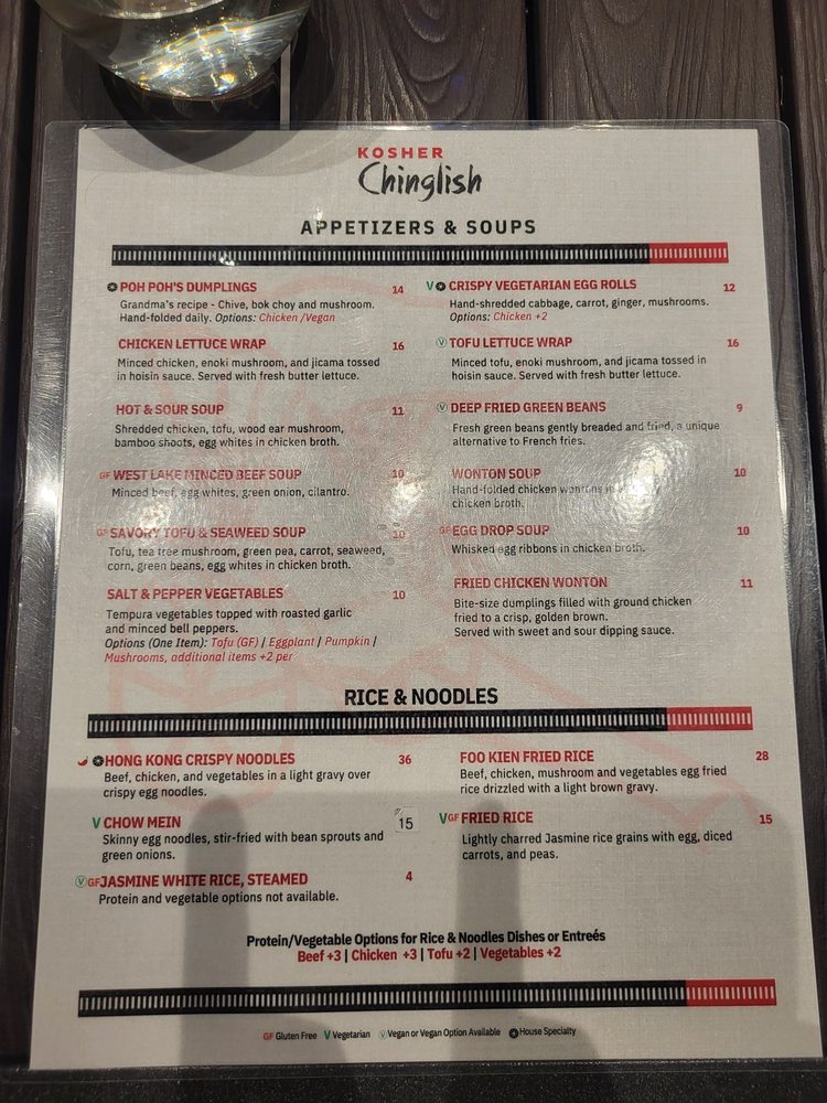 Introducing the menu at Kosher Chinglish, a remarkable restaurant in Las Vegas offering a unique blend of kosher and Chinese cuisine. This charming eatery boasts a diverse menu with options for vegans and gluten-free diners. With dishes like Tofu & Seaweed Soup, Chicken Lettuce Wrap, and Beef Rib with Green Beans, every bite is a delightful experience. Customer reviews rave about the flavorful dishes, friendly service, and reasonable prices. The attentive staff ensures a pleasant dining experience, making it a must-visit spot for those craving authentic Cantonese flavors. From the tender beef to the crispy egg rolls, every dish at Kosher Chinglish surpasses expectations. Don't miss out on the chance to savor the best kosher Chinese food in Vegas at this hidden gem of a restaurant.